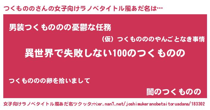| 意味不明あだ名 | 『永久保存つくものの』『自称つくものの』 |