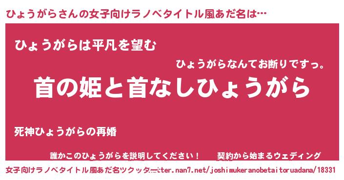 | 胡散臭い通販商品みたいなあだ名 | 『伝統あるサプリメント…その名も「ひょうがら」』 |