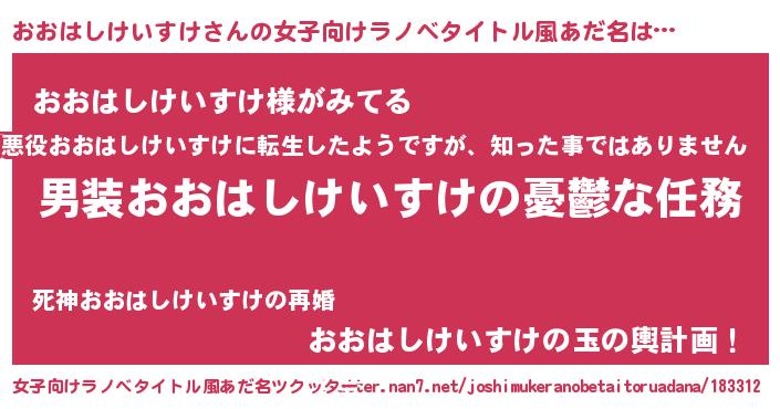 | 男性向けラノベタイトル風あだ名 | 『うちのおおはしけいすけが世界を掌握している!』 |