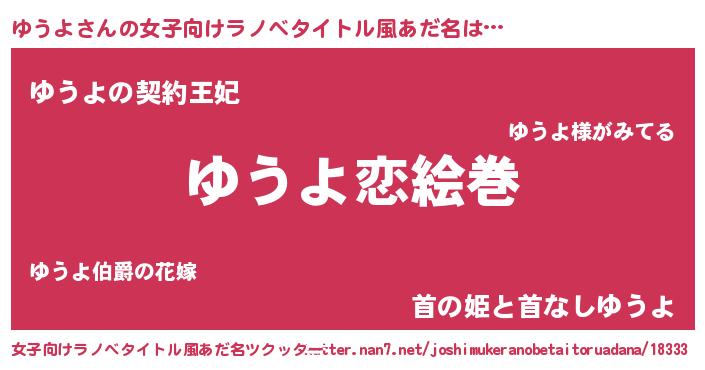 | 男性向けラノベタイトル風あだ名 | 『ノーゲーム・ノーユウヨ』 |