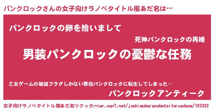 | 男性向けラノベタイトル風あだ名 | 『うちのパンクロックが世界を掌握している!』 |