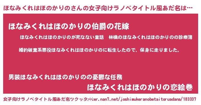 | 男性向けラノベタイトル風あだ名 | 『ホナミクレハホノカリノスレイヤー』 |