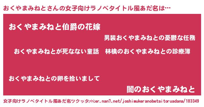 | 意味不明あだ名 | 『住所不定無職おくやまみねと(50歳)』 |