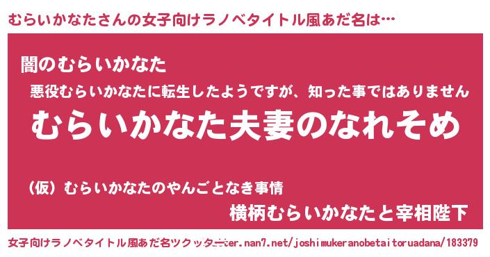 | 意味不明あだ名 | 『眠気覚ましガムむらいかなた味』 |