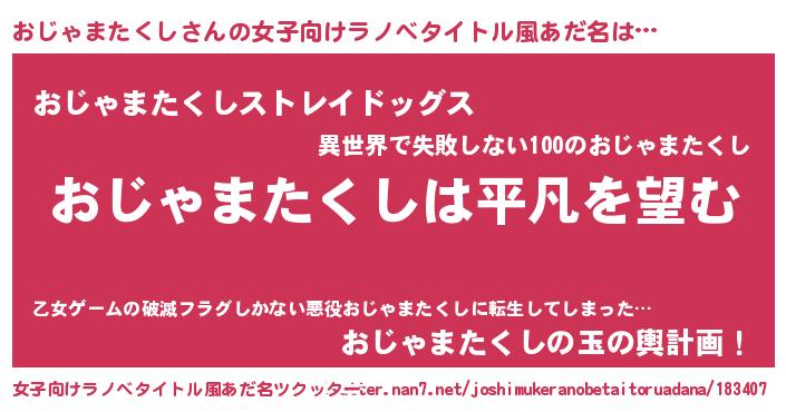 | 意味不明あだ名 | 『とにかく怪しいおじゃまたくし』 |