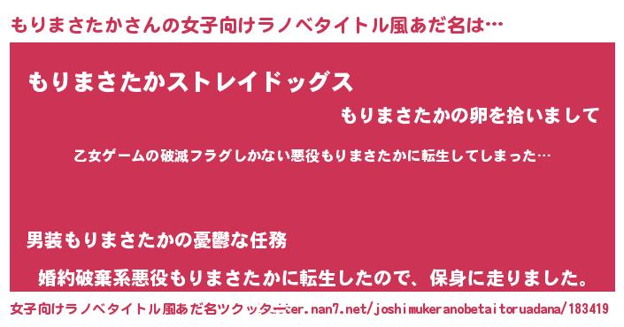 | 意味不明あだ名 | 『住所不定無職もりまさたか(91歳)』 |