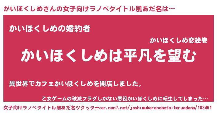 | 男性向けラノベタイトル風あだ名 | 『ダンジョンにかいほくしめを求めるのは間違っているだろうか』 |