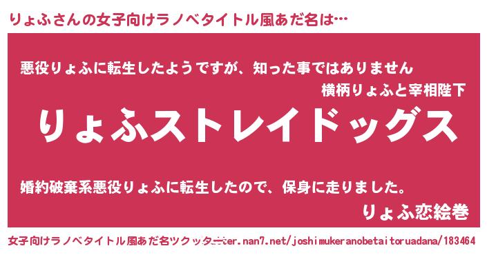 | ヘコむあだ名 | 『りょふ(爆)』『りょっ子』 |