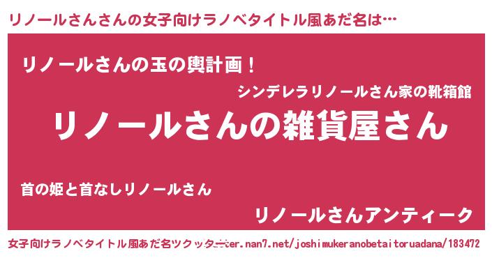 | 男性向けラノベタイトル風あだ名 | 『やはりリノールさんの青春ラブコメはまちがっている 』 |