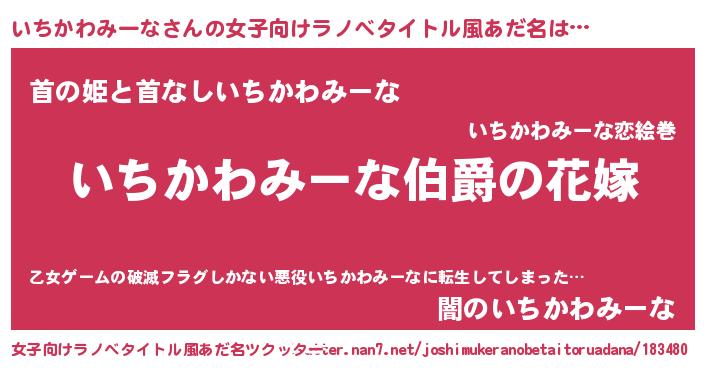 | 男性向けラノベタイトル風あだ名 | 『やはりいちかわみーなの青春ラブコメはまちがっている 』 |