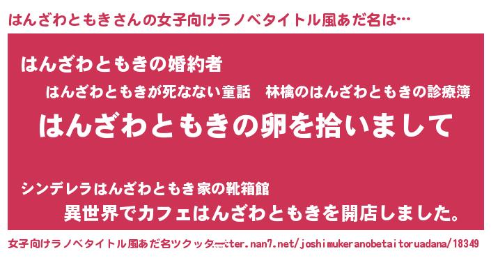 | 意味不明あだ名 | 『とにかく怪しいはんざわともき』 |