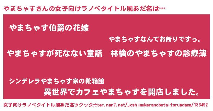 | 胡散臭い通販商品みたいなあだ名 | 『ハリウッド女優が絶賛した100年もののヴィンテージワイン…その名も「やまちゃす」』 |