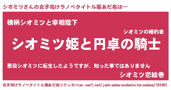 | 男性向けラノベタイトル風あだ名 | 『シオミツアートオンライン』 |