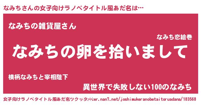 | ファンタジー風あだ名 | 『ファントムナミス』『ナミディッシュ』 |