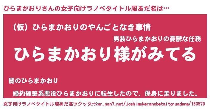 | ヒーロー風カッコイイあだ名 | 『炎刃騎士ヒラ』『スーパーヒラマカオリ』 |