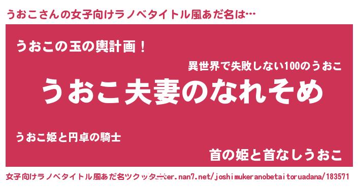 | 男性向けラノベタイトル風あだ名 | 『おまえをオタクにしてやるから、俺をうおこにしてくれ! 』 |