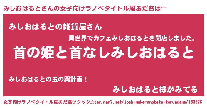 | 男性向けラノベタイトル風あだ名 | 『はたらくみしおはるとさま!』 |