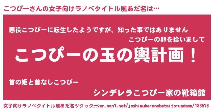 | 男性向けラノベタイトル風あだ名 | 『転生したらこつぴーだった件』 |