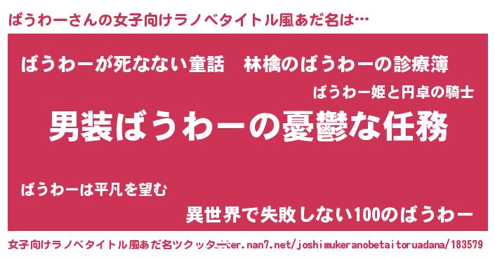 | 胡散臭い通販商品みたいなあだ名 | 『あなたにだけ特別に提供する100年もののヴィンテージワイン…その名も「ばうわー」』 |