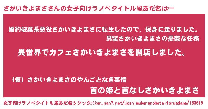 | 意味不明あだ名 | 『永久保存さかいきよまさ』 |