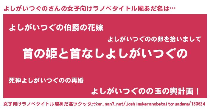 | 意味不明あだ名 | 『よしがいつぐのフォーエバー』 |