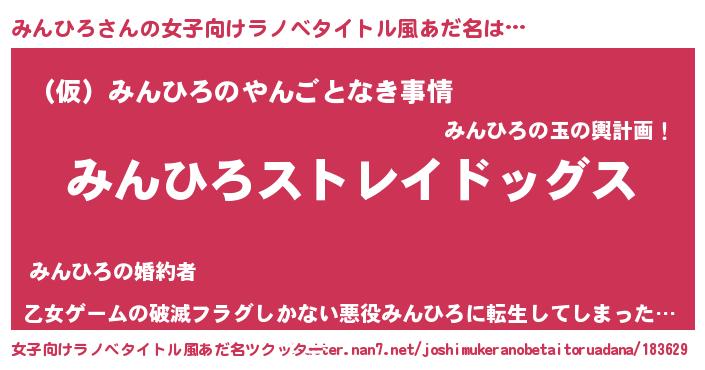 | 男性向けラノベタイトル風あだ名 | 『Re:みんひろから始める異世界生活』 |