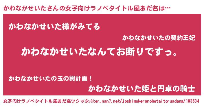 | ヒーロー風カッコイイあだ名 | 『超時空戦士カワナカセイタ』 |