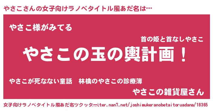 | 男性向けラノベタイトル風あだ名 | 『転生したらやさこだった件』 |