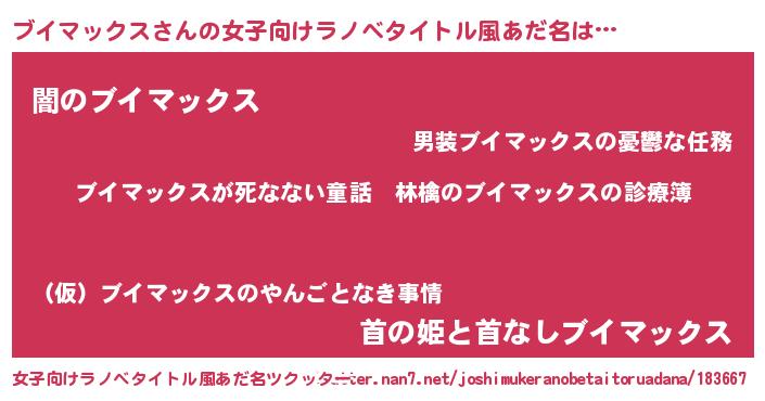| 男性向けラノベタイトル風あだ名 | 『魔弾の王とブイマックス』 |