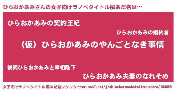 | 男性向けラノベタイトル風あだ名 | 『ひらおかあみの憂鬱』 |