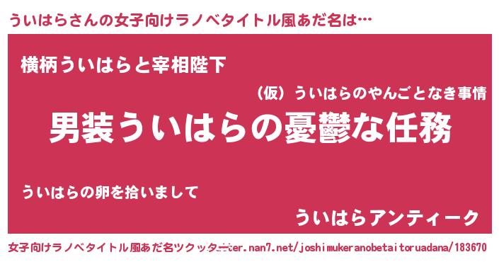 | 男性向けラノベタイトル風あだ名 | 『冴えないういはらの育てかた』 |