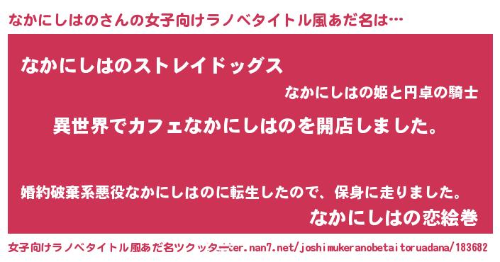 | 意味不明あだ名 | 『永久保存なかにしはの』 |