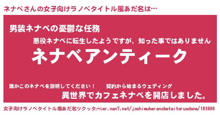| 男性向けラノベタイトル風あだ名 | 『魔法科高校のネナベ』 |