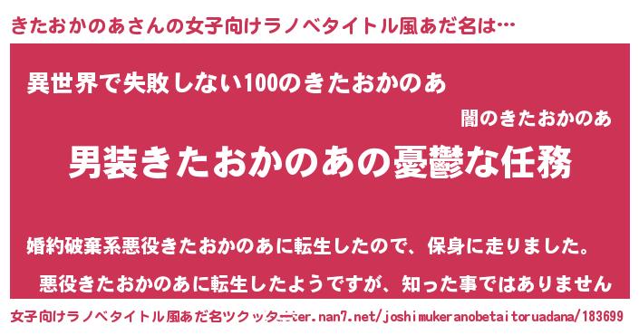 | 男性向けラノベタイトル風あだ名 | 『うちのきたおかのあが世界を掌握している!』 |