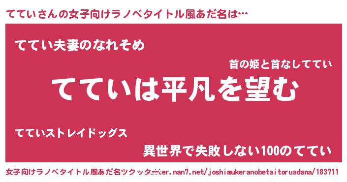 | 男性向けラノベタイトル風あだ名 | 『ダンジョンにてていを求めるのは間違っているだろうか』 |