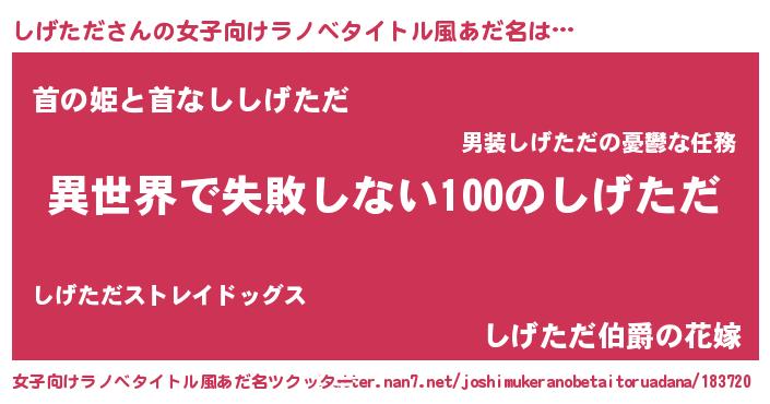 | 男性向けラノベタイトル風あだ名 | 『しげただという概念が存在しない退屈な世界 』 |