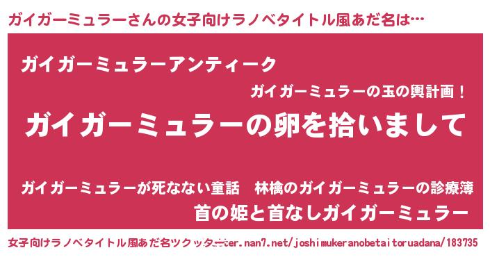 | ポケモン風あだ名 | 『ヒガイガーミュラー』『ガイセウス』 |