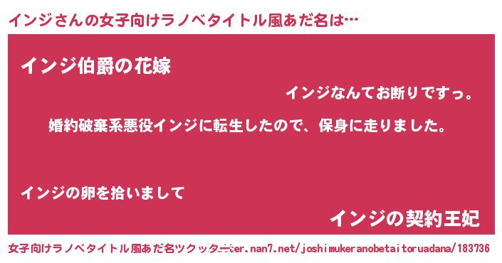 | 男性向けラノベタイトル風あだ名 | 『インジスレイヤー』 |