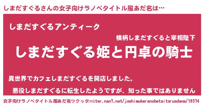 | 男性向けラノベタイトル風あだ名 | 『しまだすぐるの憂鬱』 |