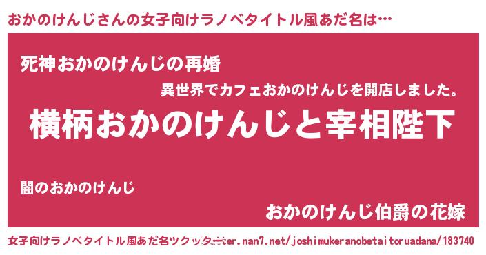 | 男性向けラノベタイトル風あだ名 | 『おかのけんじに滅ぼされるだけの簡単なお仕事です』 |