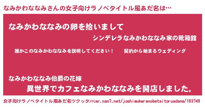 | 胡散臭い通販商品みたいなあだ名 | 『億万長者になれるブレスレット…その名も「なみかわななみ」』 |