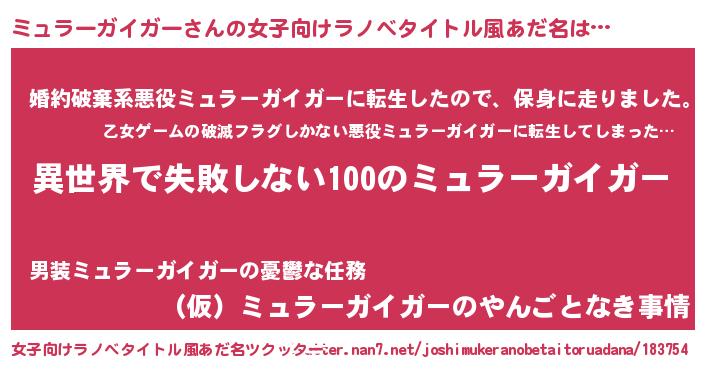 | 胡散臭い通販商品みたいなあだ名 | 『絶対に幸福をもたらす招き猫…その名も「ミュラーガイガー」』 |