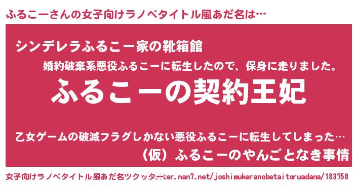 | 胡散臭い通販商品みたいなあだ名 | 『来世でも幸せになれる水素水…その名も「ふるこー」』 |