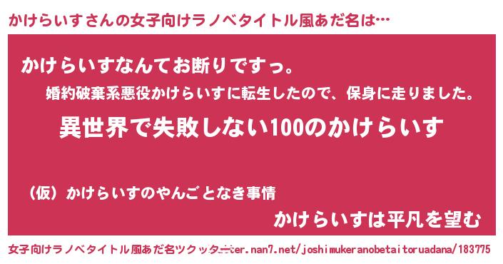 | 胡散臭い通販商品みたいなあだ名 | 『絶対に幸福をもたらす水素水…その名も「かけらいす」』 |