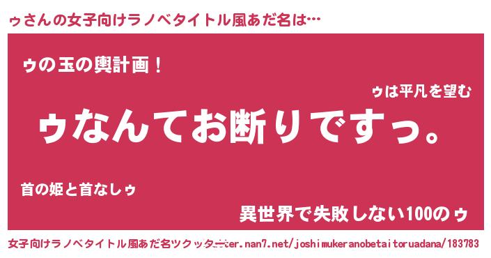 | 男性向けラノベタイトル風あだ名 | 『魔法科高校のゥ』『はたらくゥさま!』 |