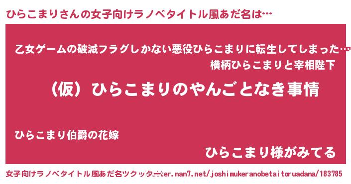 | 胡散臭い通販商品みたいなあだ名 | 『必ず成功するブレスレット…その名も「ひらこまり」』 |