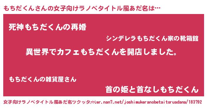 | 男性向けラノベタイトル風あだ名 | 『誰もが恐れるあのもちだくんが、ぼくの専属メイドになるようです。』 |