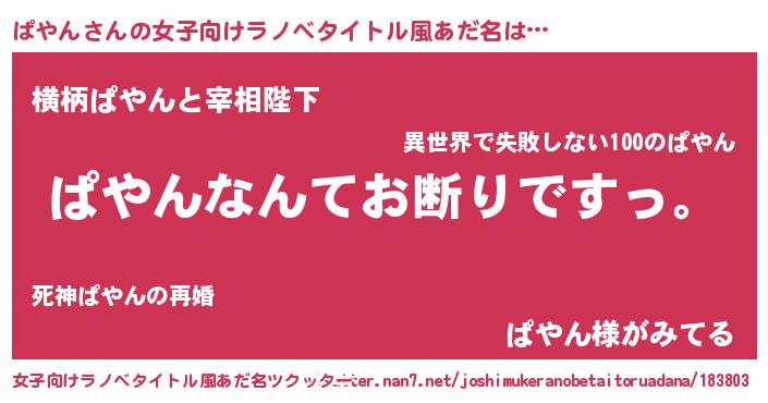 | 男性向けラノベタイトル風あだ名 | 『魔法科高校のぱやん』 |