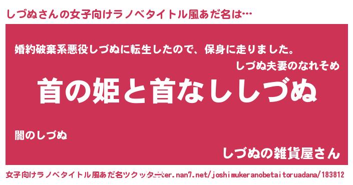 | 男性向けラノベタイトル風あだ名 | 『はたらくしづぬさま!』 |