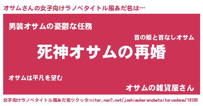 | 男性向けラノベタイトル風あだ名 | 『ノーゲーム・ノーオサム』 |